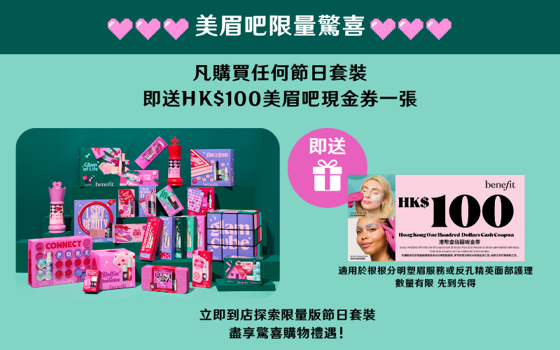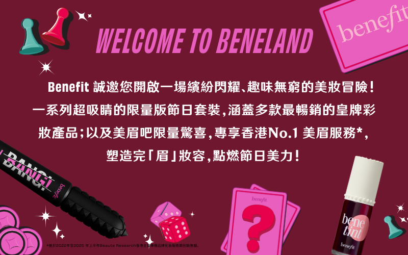 WELCOME TO BENELAND美妝樂園,玩轉節日美妝!登記Brow Mapping眉形定位及分析服務,找出您的完「眉」組合,點燃節日美力,完成體驗後可獲得反孔精英系列體驗裝三片^!